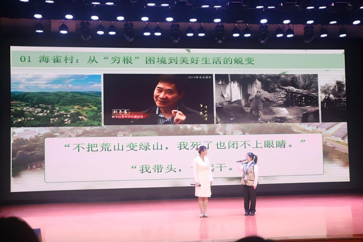 展示环节中,各校节目精彩纷呈,成为活动的最大亮点。来自小学、中学、高校的师生们围绕主题,分别呈现了各具学段特色的思政课建设成果。贵州师范学院马克思主义学院学生以情景宣讲方式讲述郭贵故事,结合中国式现代化阐释青年担当;以沉浸式情景剧再现海雀村蜕变,传递坚守与扎根信念;以宣讲+情景表演的方式演绎黄文秀扶贫事迹,彰显无私品格、体悟党员初心。贵阳市云岩区第一中学的学生以诗朗诵+情景演绎的方式,热情讴歌革命先辈精神,以“青春追光者”视角传递信仰力量、传承红色基因;贵州省实验中学的学生以激昂鼓点生动展现中华传统文化魅力,传递青少年朝气,诠释担当精神;新天九年制学校高新分校学生以庄严宣誓完成信仰接力,“红领巾心向党”传递少年传承红色血脉、勇担使命的决心。