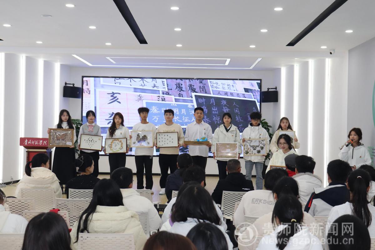 在“词语猜猜猜”互动区,师生们通过趣味竞猜的方式,把抽象的共同体理念转化为生动的游戏语言,现场欢笑与思考交织。最具专业特色的当属生物标本展示,标本定格了生命最本真的模样,也藏着人类与自然休戚与共的秘密。同学们结合动植物演化、生态共生的知识,诠释“人与自然和谐共生”的共同体内涵,让专业学习与时代命题形成呼应。随后,全班集体诗朗诵,原创诗作《热爱生命 创造未来》以真挚的语调诉说对祖国的热爱与眷恋。
