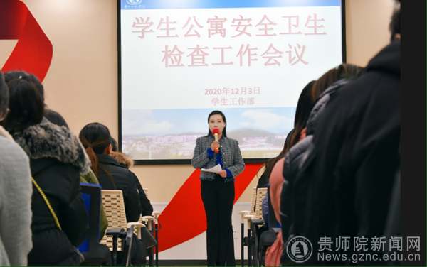 王珏对此次学生公寓的安全卫生大检查工作进行了安排并通报了近期公寓发生的学生违规问题。
