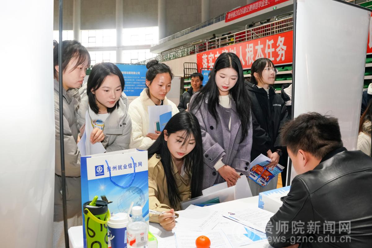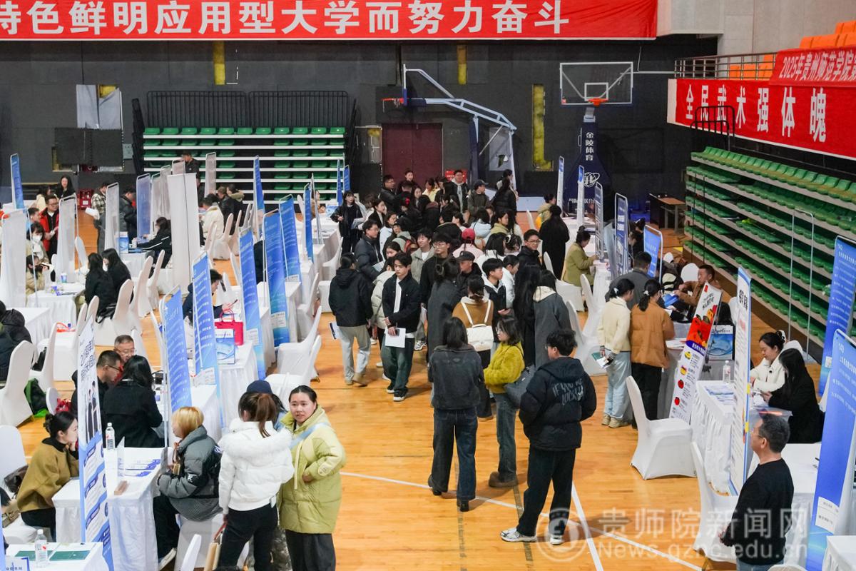 本网讯 为深入贯彻落实党中央、国务院及省委、省政府关于促进高校毕业生就业创业的决策部署,全力抢抓秋季校园招聘黄金期,扎实推进我校2026届毕业生更充分、更高质量就业,12月12日,我校在体育馆成功举办“就”在金秋 “职”达未来——贵州师范学院2026届毕业生秋季综合类大型双选会暨“宏志助航计划”专场招聘会。校党委书记战勇,校长王蜀黔,校党委常委、副校长陈真波到招聘会现场指导。