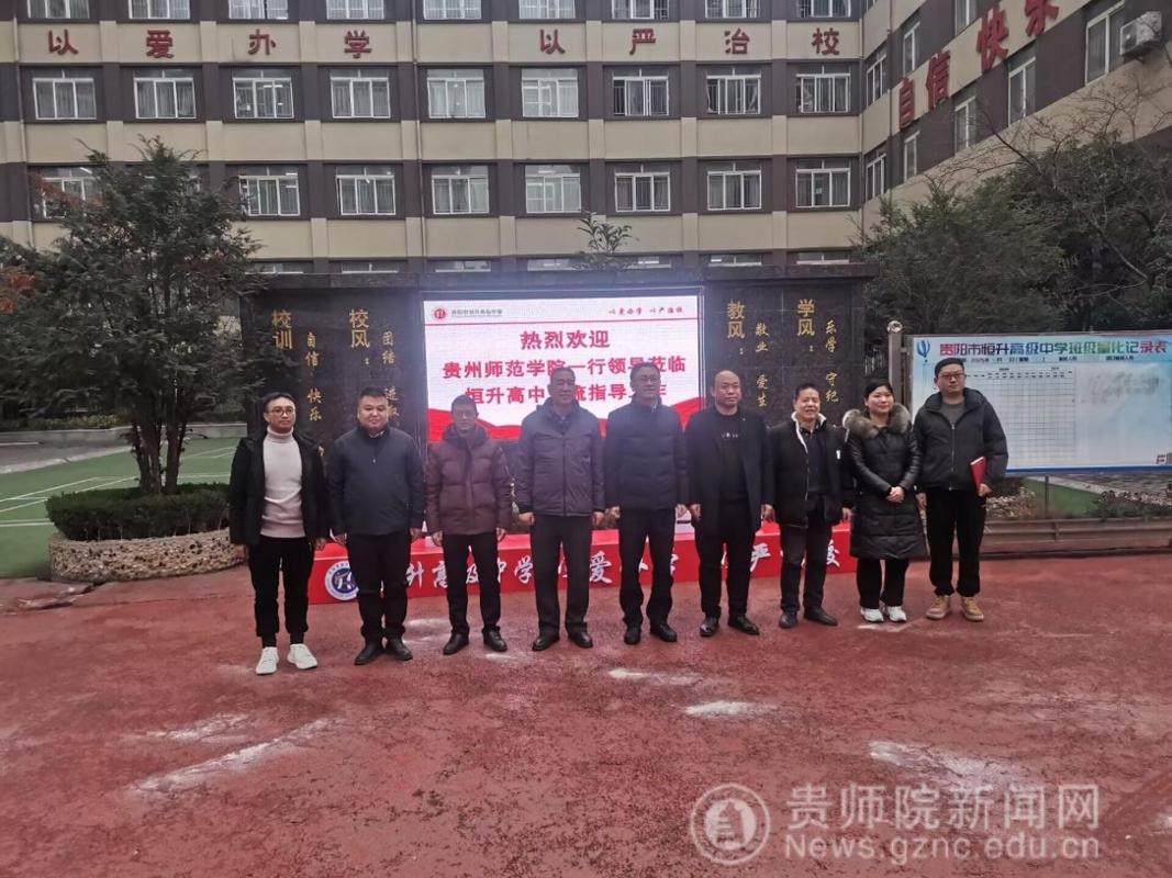 本网讯 为深入贯彻落实国家关于促进高校毕业生就业创业工作的决策部署,扎实推进学校2026届毕业生就业工作,深化校校合作与人才供需对接,1月21日,学校党委常委、副校长潘运带队赴贵阳市恒升高级中学开展“优企引才”定向访企拓岗促就业专项行动。教育科学学院院长宋万琚、党委副书记傅小芳、学院教学督导莫太极陪同调研。贵阳市恒升高级中学董事长王长峰、党支部书记刘晓荣、校长吴利彬、副校长刘甜和教导主任赵平参加了座谈交流。此次活动旨在实地调研基础教育一线的人才需求,拓展优质就业岗位,为我校毕业生高质量就业搭建精准桥梁。