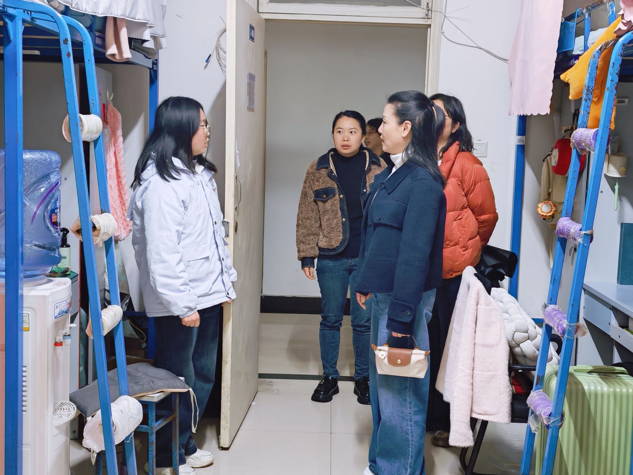 走访中,校领导一行走进各宿舍,与同学们亲切交谈,细致询问返程情况、假期收获、新学期规划与生活需求,现场回应大家关心的问题。领导们实地查看宿舍环境卫生、住宿设施与安全状况,叮嘱同学们规范用电、杜绝违规电器,保持整洁文明的宿舍环境,增强反诈与消防安全意识,共同守护平安校园。勉励大家尽快收心归位,调整作息、专注学业,以昂扬饱满的状态投入新学期;珍惜大学时光,明确目标、勤学善思,在专业学习与实践锻炼中成长成才;团结室友、互帮互助,把宿舍建成温暖港湾与成长阵地。一句句叮嘱、一声声鼓励,让同学们倍感温暖、备受鼓舞。