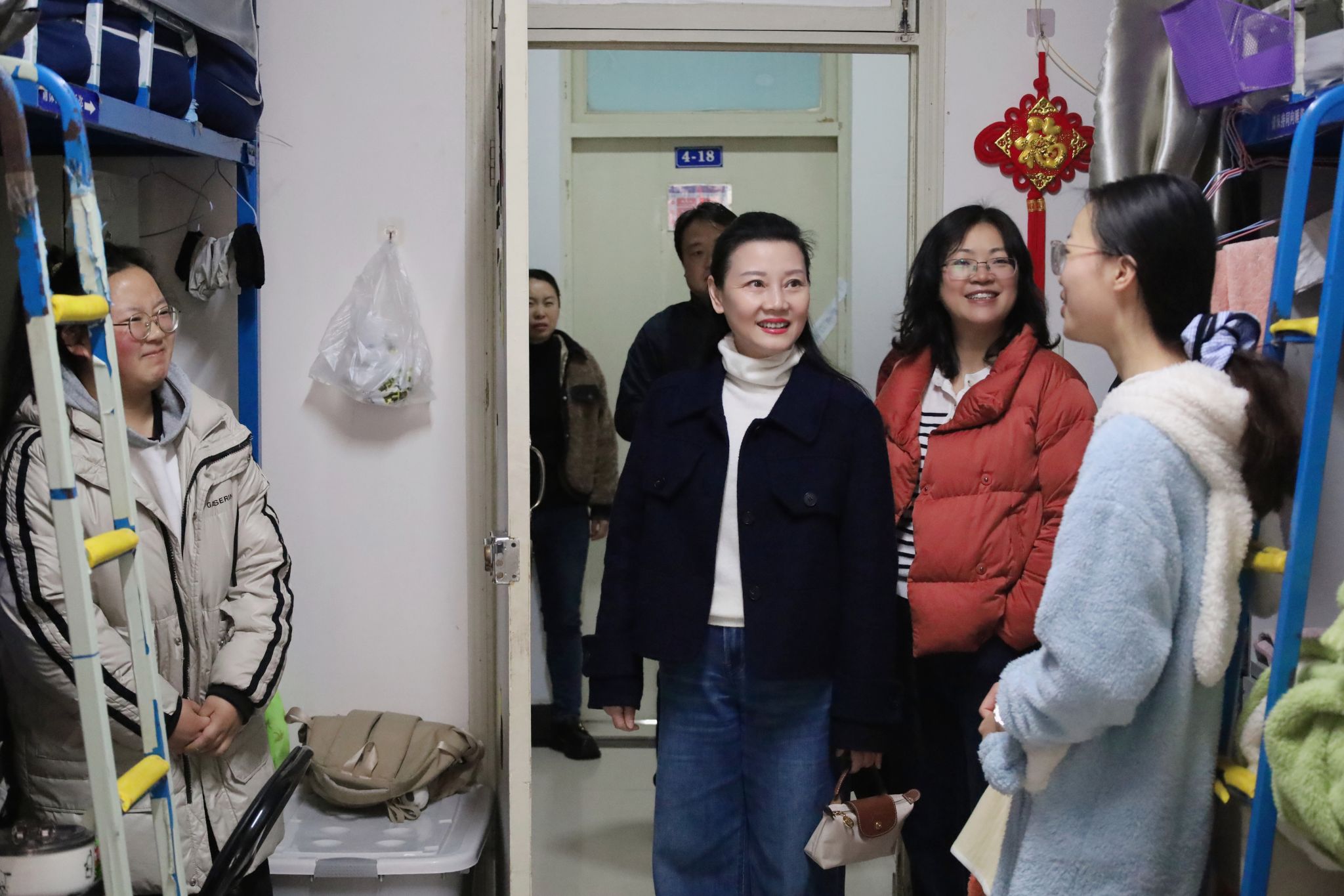 本网讯 新春伊始,万象更新。为深入了解同学们返校后的学习生活状况,传递学校关怀,筑牢校园安全防线,近日,校党委副书记邹晓青带领学工部部门负责人、各学院负责人及辅导员,深入学生宿舍走访慰问,与学子面对面交流、心贴心沟通,为新学期开启暖心序幕。