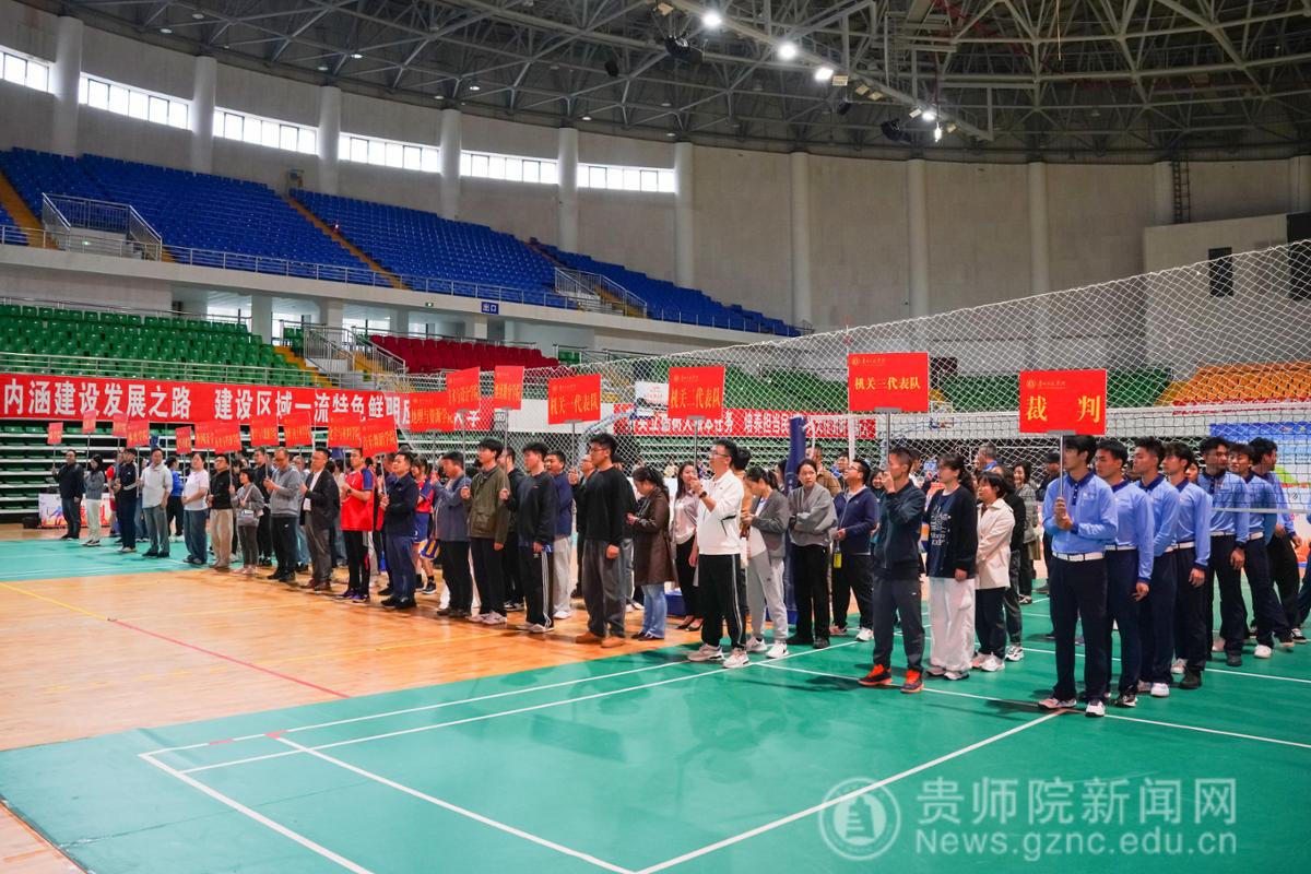 金秋送爽,丹桂飘香。为积极响应全民健身国家战略,深入落实《“健康中国2030”规划纲要》,丰富教职工精神文化生活,提升身心健康水平,营造和谐、积极、向上的校园氛围,10月20日,贵州师范学院“燃动金秋,悦享运动”2025年教职工气排球比赛在学校体育馆开幕。校党委书记战勇,校党委常委、副校长(正厅长级)赵守盈出席开幕式。