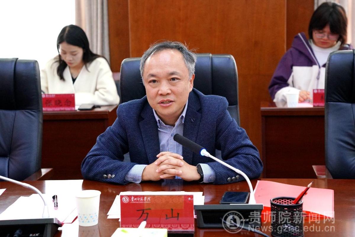 座谈会上,王蜀黔对贵州建设职业技术学院万山一行的到来表示热烈欢迎,全面介绍了我校的基本情况、历史沿革、学科建设、创新创业教育等成果。她表示,贵州师范学院与贵州建设职业技术学院虽学科侧重不同,但同为应用型人才培养阵地,在课程建设、师资培育、双创实践等方面有着极强的互补性和广阔的合作空间。希望借此次交流学习契机,开展深层次多元化的交流合作,共同推动两校教育事业高质量发展。