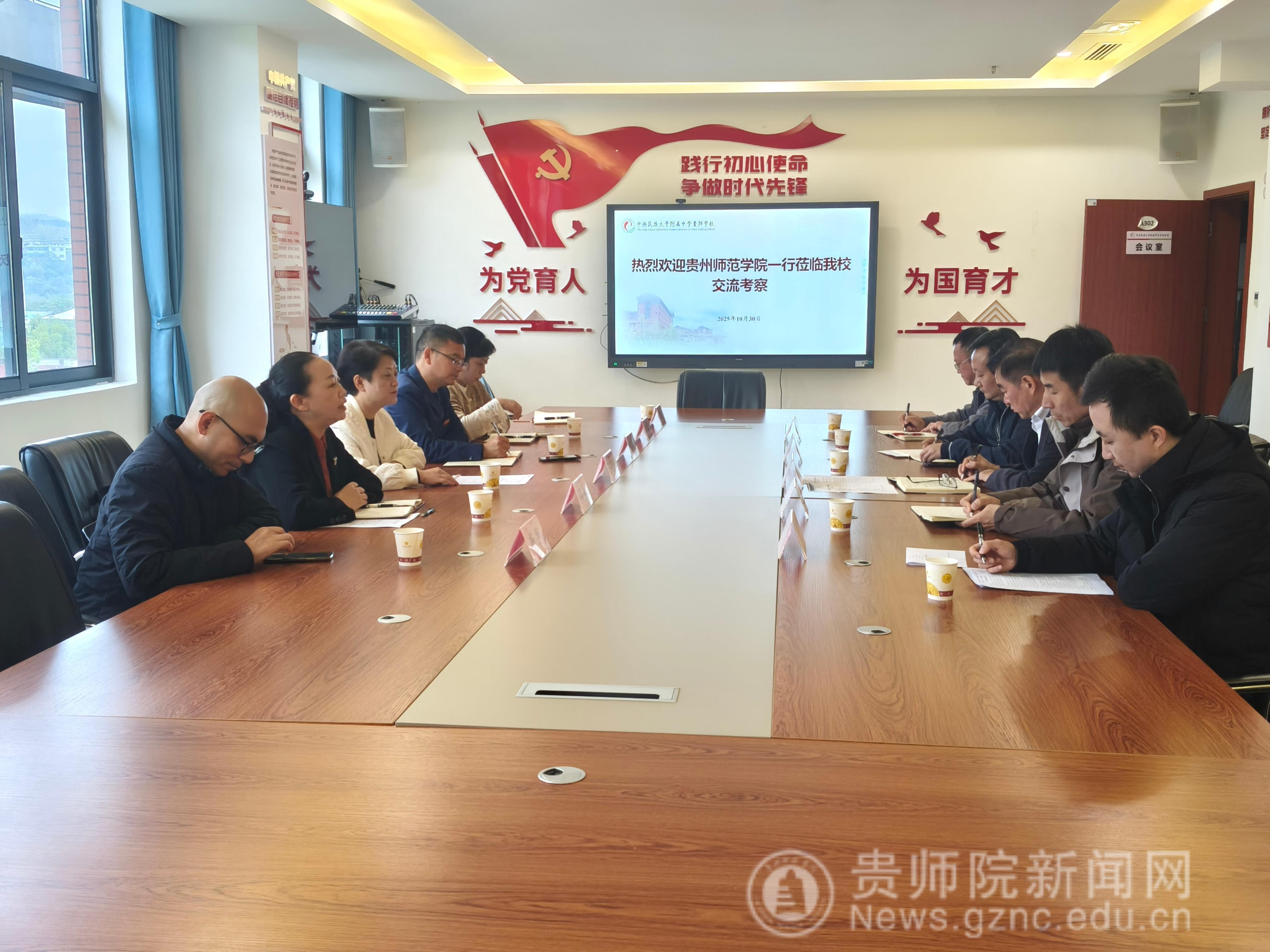 双方围绕2022年两校签署协同育人基地以来相关合作工作开展情况,以及下一步合作事项进行了交流座谈。张国平校长对王蜀黔校长一行到访表示热烈欢迎,期望今后五年在学校发展关键时期能得到贵州师范学院进一步帮助,特别是在教师发展、学生培养、课程资源建设、评价改革研究、大中小思政一体化建设、教学成果申报等方面两校能开展更多、更实的工作,促进两校共同发展。