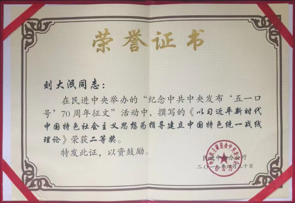 作为民进贵州省委副主委,刘大泯围绕“四新”主攻“四化”,统筹做好民进各项工作,聚焦乡村振兴中的文化引领作用,找准民进自身优势和工作的结合点,多次前往省内各地开展调研指导活动,与各民进州委会和基层组织会员进行交流,听取工作汇报和意见建议,带领大家深入学习领会习近平总书记重要讲话精神,坚定正确的政治方向。撰写《关于发挥文化建设在乡村振兴引领作用的对策建议》,倡导打造“贵银苗绣”特色旅游商品品牌,形成《关于加大苗绣产业扶持力度的建议》和《扩大贵州苗画等民族民间工艺品的社会影响力和市场占有率的对策建议》等报告。