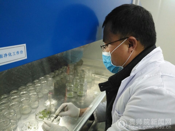 曹剑锋在转接同学们培养的植物材料