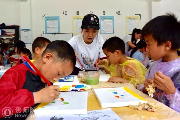 这样的公益组织张源陆陆续续参加了两年多,今年三月份的时候,张源和同事带领贵州师范学院的几个学生组织了“乐·绘”团队。“乐·绘”团队聚焦留守儿童艺术教育资源匮乏的问题,利用学生周末时间到贫困山村去帮助小朋友学习绘画,体验色彩的感觉,让他们接触艺术,感受艺术。更重要的是,抽出时间去陪伴那些缺乏陪伴的孩子们,给他们的童年带去一抹彩色。