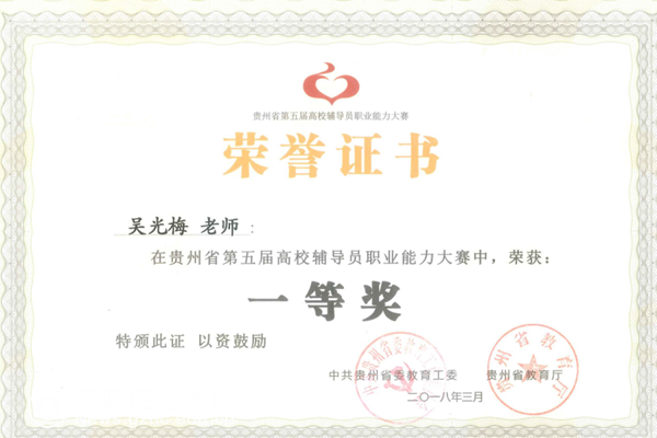 获得贵州省第五届高校辅导员职业能力大赛一等奖