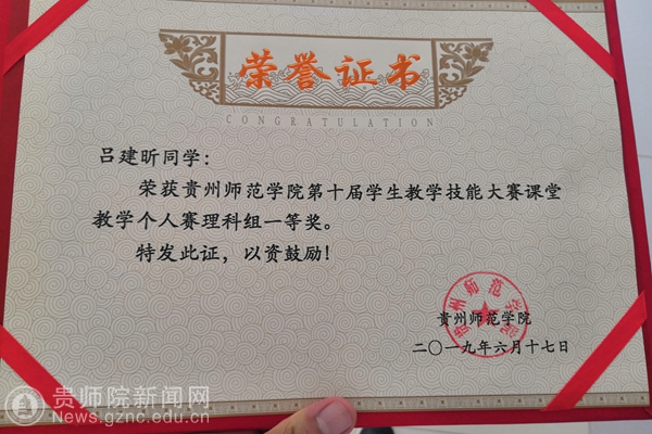 2017年,吕建昕怀着激情、带着信念,借梦想之风,伴亲友之力,自东北平原到达云贵高原进入贵州师范学院,走进校园,凝视着“为人师表”的红色校训,聆听着老师的谆谆教诲,他的心中不由得激动万分。