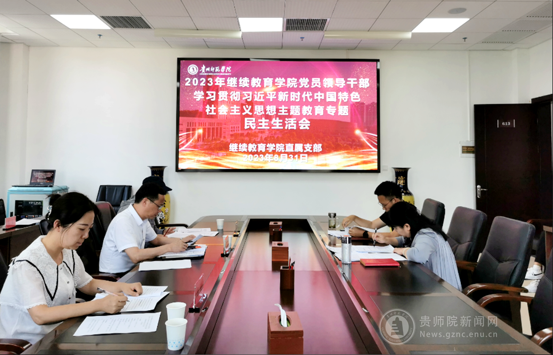 本网讯 按照学校党委的统一部署和学院支委工作安排,8月31日下午,继续教育学院召开党员领导干部学习贯彻习近平新时代中国特色社会主义思想主题教育专题民主生活会。校党委副书记熊世桓、督促指导组有关同志到会指导,学院直属党支部书记韦丹、副院长蔡晶,直属支部班子全体成员,科级干部代表、教师代表参加会议。