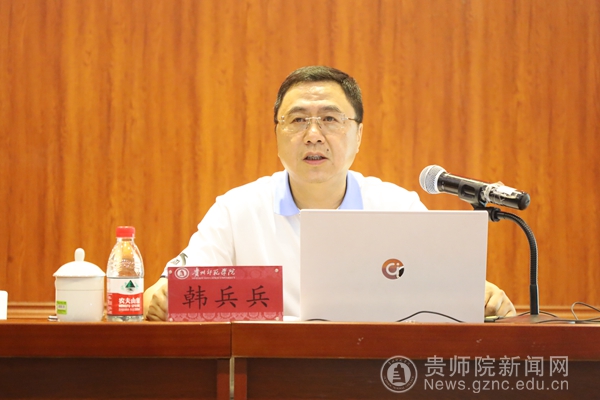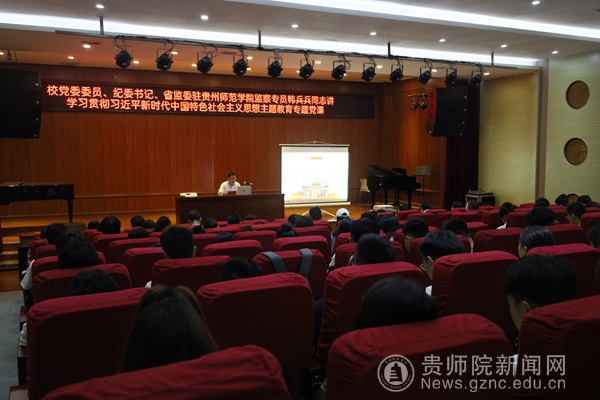 本网讯 为深入推进学习贯彻习近平新时代中国特色社会主义思想主题教育走深走实,根据学校党委领导班子讲授主题教育专题党课暨贵州师范学院“百名书记讲党课”工作安排,6月21日,校党委委员、纪委书记、省监委驻贵州师范学院监察专员韩兵兵在音乐舞蹈学院六楼演播厅讲授主题教育专题党课。校党委书记石培新、省委主题教育第十八巡回指导组组员陈洁到会指导。校纪委委员,校纪检监察机构全体人员,实验中学纪委全体人员,校巡察办,音乐舞蹈学院班子成员、教师党员以及部分学生党员代表参加了党课。主题教育党课由音乐舞蹈学院党委书记李佩主持。