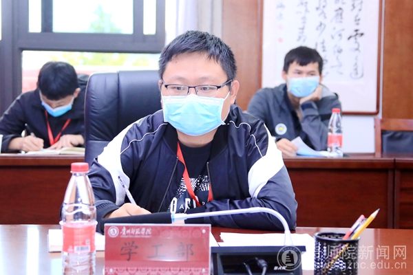 教务处处长邓琴汇报了学校在疫情防控期间教学工作的开展情况,并对如何组织线上教学、实习工作管理、实验室安全管理三方面的内容作了介绍;后勤处副处长高强汇报了校园疫情防控物资保障工作的基本情况,并介绍了在常态化疫情防控阶段工作须知内容,学生工作部副部长官鹏飞对校园疫情防控期间学生管理工作的相关情况作了汇报,保卫处副处长刘宪帮汇报了校园安全保障的相关工作情况。