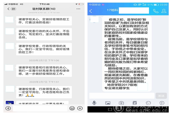 本网讯 “亲爱的老师,面对疫情,请坚强!……学校就是您的坚强后盾。您的身心健康,就是我们最大的期盼,您的平安归来,就是我们最大的心愿……如遇到困难,请及时联系我们,学校将竭力为您提供帮助”。