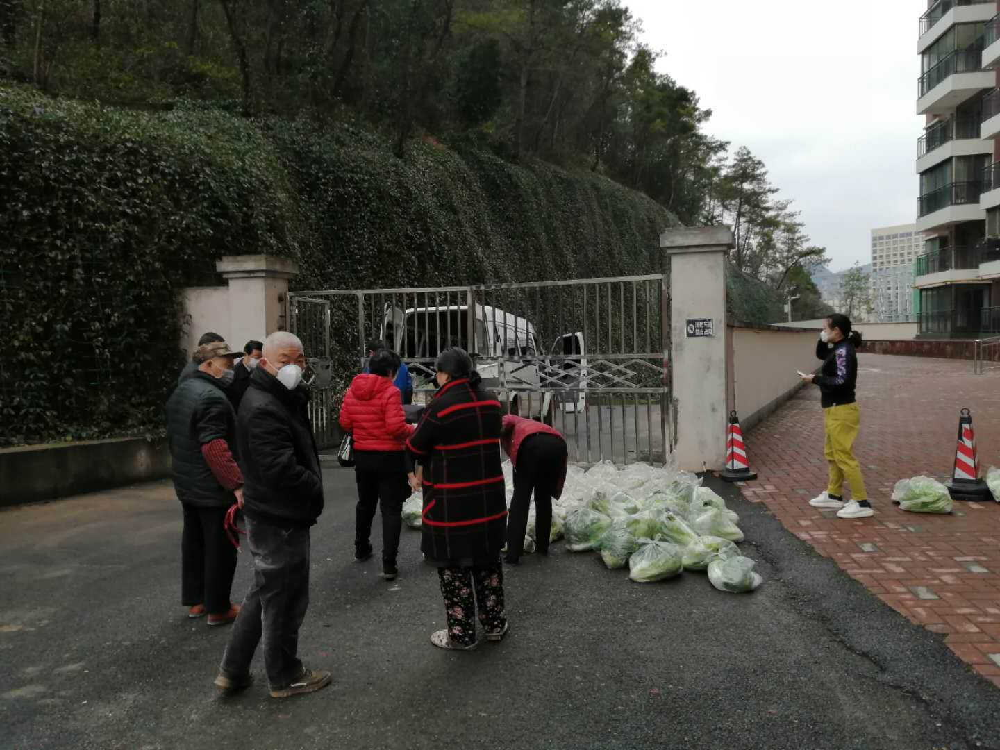 2020年2月15日上午9:30,伴随着冬日阵阵的寒风,仁怀市高大坪镇供销专业合作社工作人员冒着严寒驱车200多公里,给小区居民送来田间地头刚刚采摘包装好的600多斤新鲜蔬菜,让小区住户感觉到了来自小区党支部与该合作社的温暖和力量。随即,十里江南和公租房两个支委的几位同志积极引导小区居民根据订单领取蔬菜。此次进入小区的蔬菜主要有白菜、萝卜、儿菜等,合作社在装车前已根据每一份订单包装好,以方便业主领取。小区业主们在拿到新鲜实惠的蔬菜时都纷纷表示,“足不出小区便能把新鲜又实惠的蔬菜弄到家,解决了大家在特殊时期新鲜蔬菜采购难的问题,也极大降低了外出购买蔬菜感染疾病的风险”。