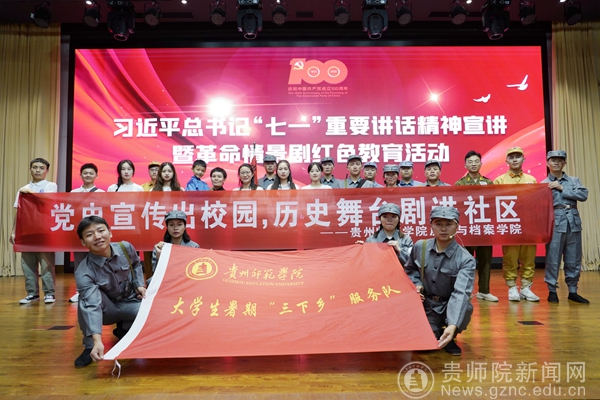 在党史学习教育中,历史与档案学院充分发挥专业特色,主动承担起传播光荣历史,弘扬红色文化的重任,为青年大学生上好一堂“行走的思政课”,做学生锤炼品格、奉献祖国的引路人,帮助学生回答好“将来要成为什么样的人,要为国家和民族做什么样的贡献”这一人生课题。学院组建“星火党史学习实践团”,先后前往贵阳市观山湖区、乌当区下坝镇、息烽集中营历史纪念馆、遵义会议会址、娄山关等地开展了“党史宣传出校园,红色文化进社区”、“从档案中感悟党史,在实践中为民服务”、“推普助力乡村振兴”、“重走长征路,为民办实事”、“向榜样学习,向楷模致敬”、“访谈红色人物,重温峥嵘岁月”等一系列党史学习宣传实践活动,演出革命情景剧,讲好历史红色故事,当好党史宣讲员,感悟革命前辈们的艰辛和不易,引导学生以实际行动为社会贡献青春力量,做有志气、有骨气、有底气的新时代青年。