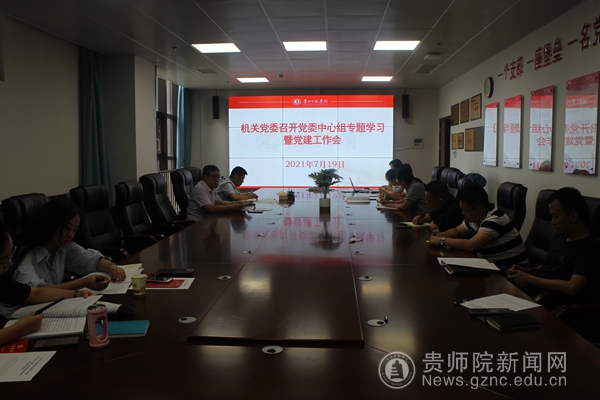 本网讯 7月19日,机关党委在信息楼会议室召开党委中心组集中学习,持续将党史学习教育和“牢记殷切嘱托、忠诚干净担当、喜迎建党百年”专题教育向纵深推进,机关党委党委委员及各党支部书记出席会议,会议由机关党委书记周永杰主持。