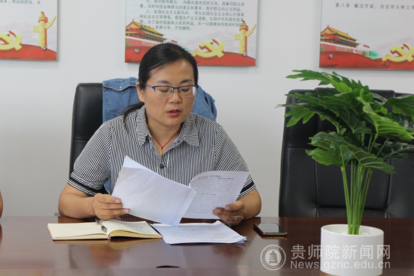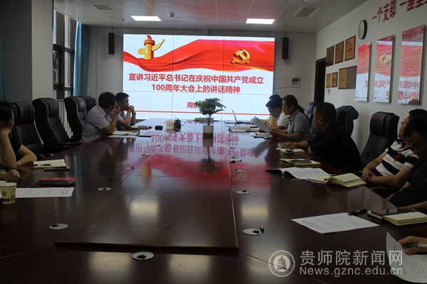 会上,围绕习近平总书记在庆祝中国共产党成立100周年大会上的讲话做主题发言。质评办主任任、第7党支部书记翠娟以《使命在肩 新货传承》为题就支部建设为出发点进行发言,以《此心安处便是吾乡》为题就个人异乡来黔安身的经历实实在在体会党的政策好,贵州的发展快。随后,教务处副处长、第6党支部书记聂冬梅以《在工作中坚持以人民为中心的发展思想》为题交流发言。