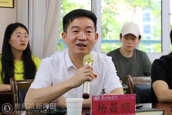 杨昌顺以“牢记殷切嘱托,赓续红色血脉——在新时代贵州新的长征路上,放飞青春梦想”为主题,带领大家回顾了贵州历史,通过今昔贵州的对比,让大家感悟当今制度之优越,党中央对贵州人民的关爱。接下来,杨昌顺从五个重点方面,带领大家一起学习领会习近平总书记在贵州的重要讲话精神,他强调:“我们要深刻领悟习近平总书记考察贵州的重要讲话精神,要努力做好巩固拓展脱贫攻坚成果同乡村振兴有效衔接,共同做到习近平总书记提出的“四新”整体要求,把“四化”作为高质量发展主攻方向,特别是旅游文化学院的同学们,更要把握好旅游产业化的大趋势,认真学习,努力奋进,把论文写在贵州大地上。”