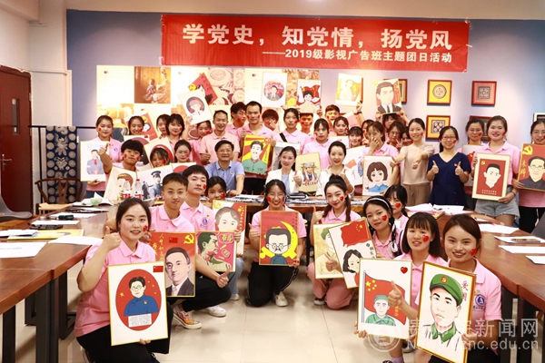 本网讯 2021年6月22日下午,我院2019级影视广告班在逸夫楼208教室开展“学党史,知党情,扬党风”主题团日活动。校党委委员、副校长邹晓青出席,学院党委书记石含洲、校团委张源、院团学负责人黄婧、辅导员谢琦以及全班39名同学参加活动。