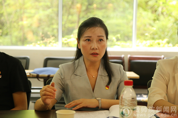 邹晓青从“文化融合、思想融合、目标融合、育人融合”四个方面解读了“以立德树人为根本推动教育教学高质量发展”的深刻内涵。她强调,要深入贯彻学习习近平总书记关于教育的重要论述,全面贯彻党的教育方针;要把课程思政立德树人的本质和协同育人的理念贯穿教学全过程;要增强高等学校党组织的政治功能与组织力、战斗力,充分发挥党把方向、谋大局、定政策、促改革的重要作用,从而推动贵州师范学院教育事业高质量发展,以优异成绩献礼建党100周年。