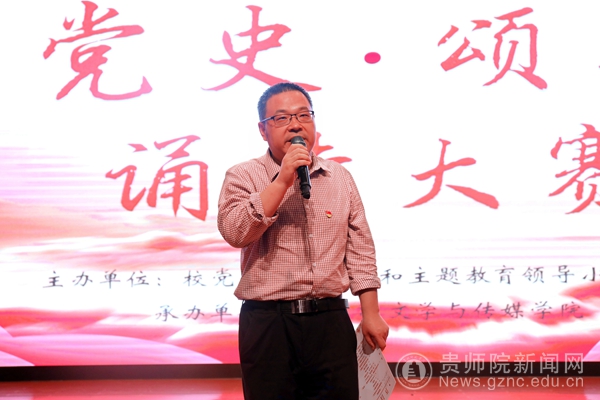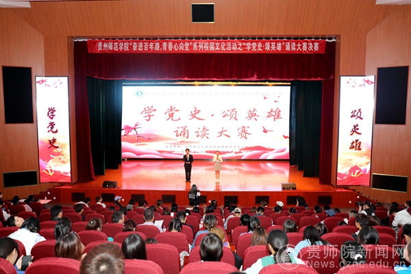 本网讯 为迎接中国共产党百年华诞,讴歌党的光辉历程和伟大成就,深入推进党史学习教育走深走实。5月26日,贵州师范学院在逸夫楼演播厅举办了“奋进百年路,青春心向党”系列校园文化活动之“学党史颂英雄”诵读大赛,开启了一堂别开生面的青春党课。校党委委员、组织部部长杨昌顺,校党委委员、宣传部部长薛璞,继续教学学院党总支书记韦丹,文学与传媒学院党委书记王军,校团委兼职副书记张源,贵州大剧院国家二级演员、主持人、普通话评测员成禄军出席担任本次大赛评委。