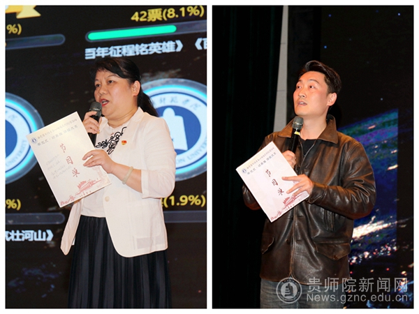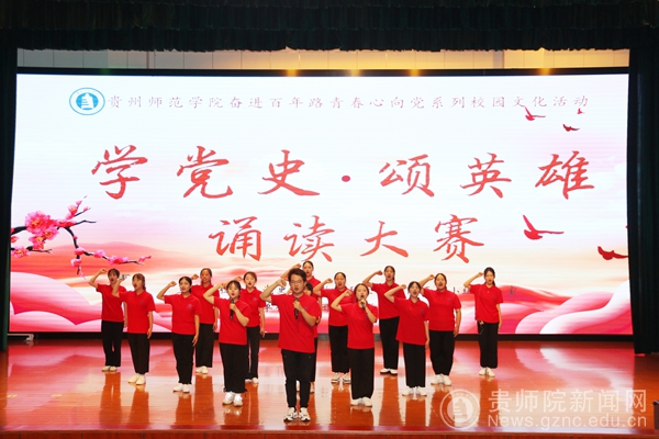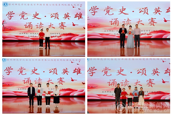 来自各个学院的17组参赛选手经过激烈的角逐,最终,文学与传媒学院的《鲜红的旗帜永不褪色》荣获一等奖;文学与传媒学院的《有一种壮举,气壮河山》和音乐舞蹈学院的《祖国我是归来的星光》荣获二等奖;美术与设计学院的《英雄》、创新创业学院的《青春中国》以及马克思主义学院的《聆听长征》荣获三等奖。青年大学生的阵阵掌声中,贵州师范学院“学党史•颂英雄”诵读大赛落下了帷幕。