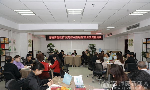 学工部、对外交流合作处、学生资助管理中心、后勤处、教师工作处、历史与档案学院、音乐舞蹈学院、美术与设计学院负责人,各学院教师、学生代表参加了座谈会。