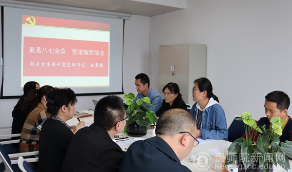 本网讯 5月21日,机关党委第七党支部在信息楼1102会议室,组织支部全体党员开展“讲党课 颂党恩”专题党课学习,本次党课由党支部书记任翠娟同志主讲。校党委副书记郭文同志以普通党员身份参加。