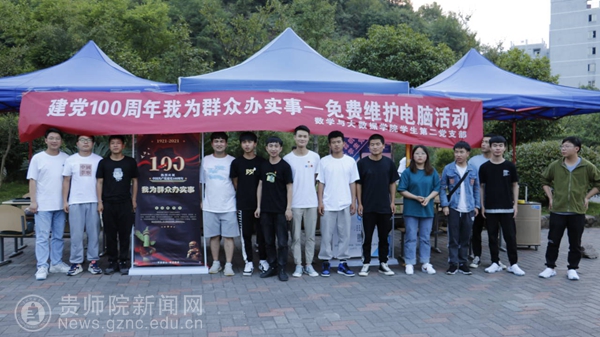 本网讯 为了庆祝建党100周年,深入党史学习教育,把“我为群众办实事”实践活动作为党史学习教育重要内容。5月11日,数学与大数据学院学生第二党支部结合自身专业特色、通过自己所学的专业技能、面向全校师生开展“建党100周年,我为群众办实事”免费维护电脑活动。活动在鉴湖旁开展,支部全体成员参与。