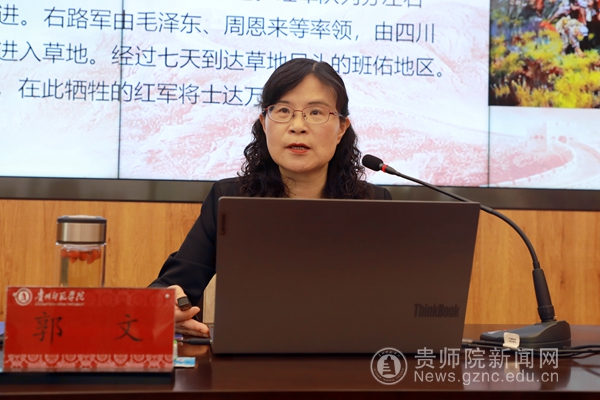 郭文指出,长征在我们党、国家、军队发展史上具有十分伟大的意义,对中华民族历史进程具有十分深远的影响。长征是一场关于理想信念、唤醒民众、开创新局的伟大远征,深刻揭示了崇高的理想,坚定的信念,永远是中国共产党人的政治灵魂,方向和路线决定了事业的成败,艰苦奋斗是战胜一切的法宝。长征精神对于我们办好人民满意的教育,实现学科建设高质量发展具有重要的意义。