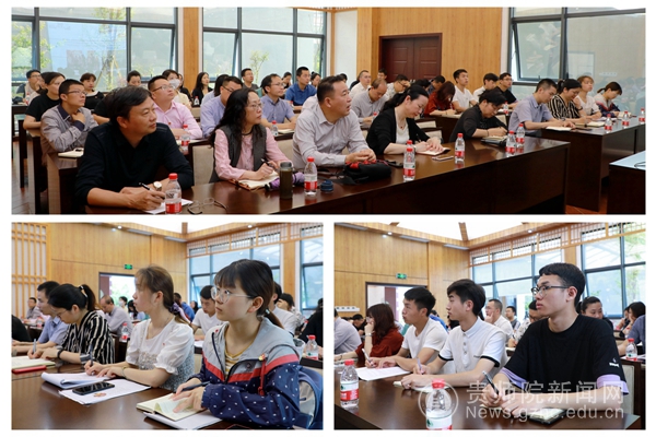 谈到学科建设和科研工作,郭文强调,要进一步完善管理规章制度,着力提升管理与服务水平,要进一步凝练学科方向与特色,厘清学科发展思路,要进一步推进学科交叉融合,促进学科体系建设,要进一步加强学科队伍建设,加快学科与科研团队建设,牢牢抓住立德树人的根本任务,牢记嘱托、感恩奋进,走好建设区域一流特色鲜明应用型大学的新长征路,为实现百姓富、生态美的多彩贵州新未来贡献师院力量和智慧。