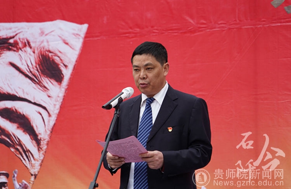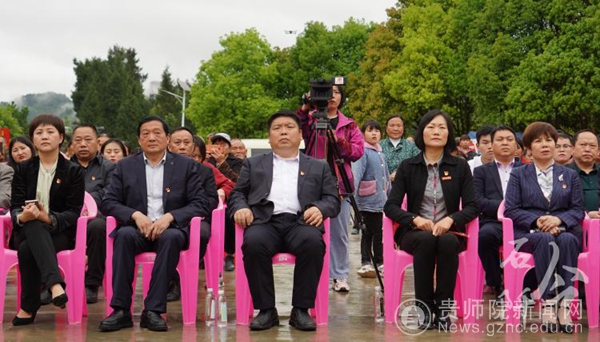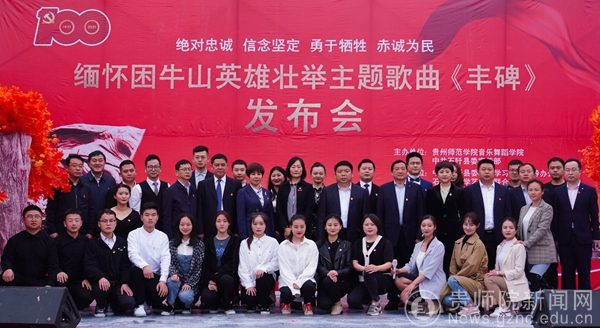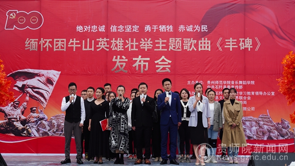 下午,在困牛山纪念碑下举行了缅怀困牛山英雄壮举主题歌曲《丰碑》发布会。《丰碑》由贵州师范学院音乐舞蹈学院携同石阡籍艺术家李凌飞共同创作。我院党委书记付巧出席仪式并讲话,石阡县委书记田运栋,县人大常委会主任马绿春,县政协主席杨玲,县委副书记敖华及四家班子在家领导出席缅怀困牛山英雄壮举主题歌曲《丰碑》发布仪式。石阡县县委常委、县委宣传部部长、县委统战部部长夏宽忠致辞。