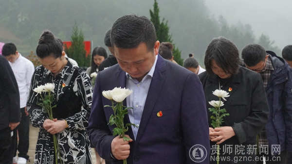 上午,在纪念碑前,讲解员通过深情讲述,把我们带回到那段可歌可泣的历史岁月。1934年10月,红六军团西征由湘入黔时遭遇敌军包围,红52团为掩护主力南撤转移,将围追堵截之敌引向石阡县困牛山。最后,剩下的170多名红军战士宁死不愿误伤夹杂在敌军中的百姓,宁死不做俘虏,毅然集体纵身跳崖,用鲜血和生命谱写了一曲惊天地、泣鬼神的英雄赞歌。大家屏住呼吸、认真聆听,很多党员师生的眼睛湿润了……