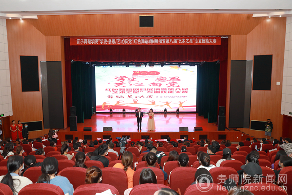 本网讯 为庆祝中国共产党成立100周年,深情回顾党的奋斗历史,讴歌党的光辉业绩,继承和发扬党的光荣传统和优良作风,进一步激发全校师生的爱党、爱国热情,切实增强师生的历史责任感和使命感,4月22日下午,贵州师范学院音乐舞蹈学院“学史•感恩,‘艺’心向党” 红色舞蹈剧目展演暨第八届“艺术之星”专业技能大赛在逸夫楼演播厅隆重举行。贵州师范学院党委书记石培新,党委委员、副校长邹晓青,党委委员、党委宣传部部长薛璞,校团委副书记罗荣出席。