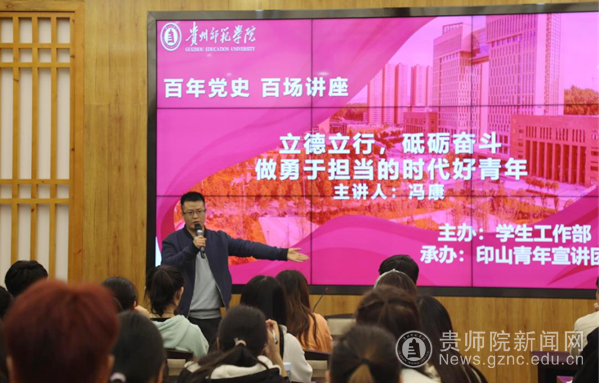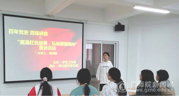 本网讯 在建党一百周年、“十四五”开局、全面建设社会主义现代化国家新征程开启之年,贵州师范学院多层次、多角度、多阵地开展党史教育系列活动,重温峥嵘岁月,分享百年变迁。近日,校学生工作部牵头面向全校师生打造党史学习教育新阵地,组织印山青年“新青年新思想”宣讲团开展党史教育入辅导员队伍、党史教育入学生讲堂、党史教育进学生活动室、党史教育进宿舍四场宣讲活动。