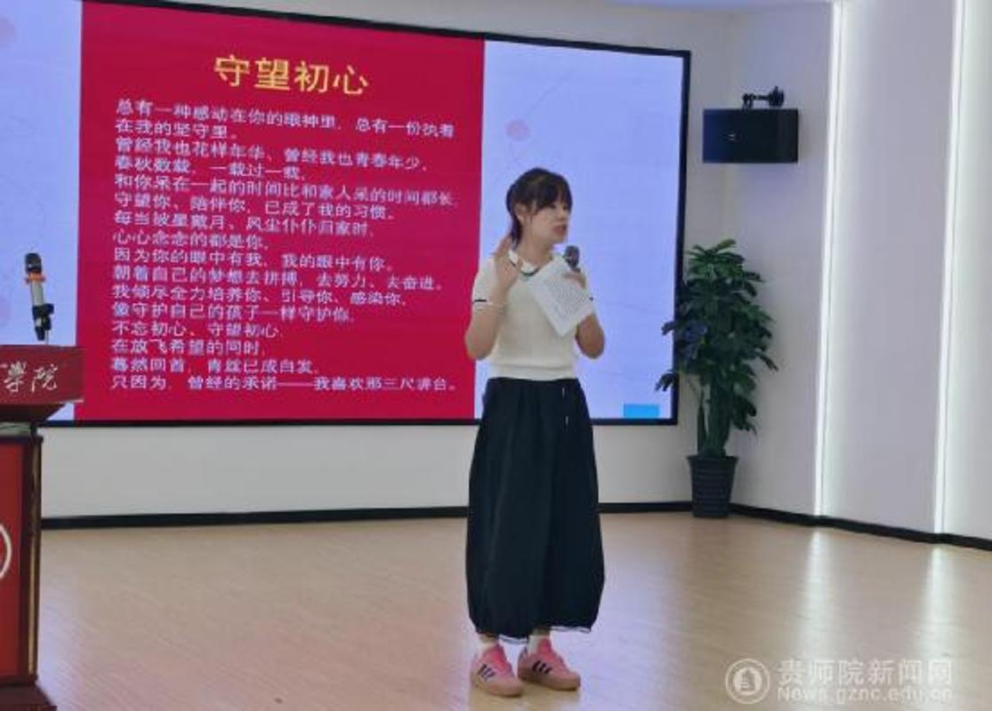 为深入贯彻落实新时代教师队伍建设要求,切实提升师范生培养质量,10月17日,化学与材料学院在学校“一站式”学生社区服务中心举行“培师德、铸师魂、强师能”系列活动。本次活动特邀遵义市教育科学研究院院长、贵州省骨干教师王琳琳作《中小学育人方式变革背景下化学教师专业发展路径与策略》讲座,2023级、2024级化学专业全体学生和化学专业教师参加学习。活动由学院副院长李艳莹主持。