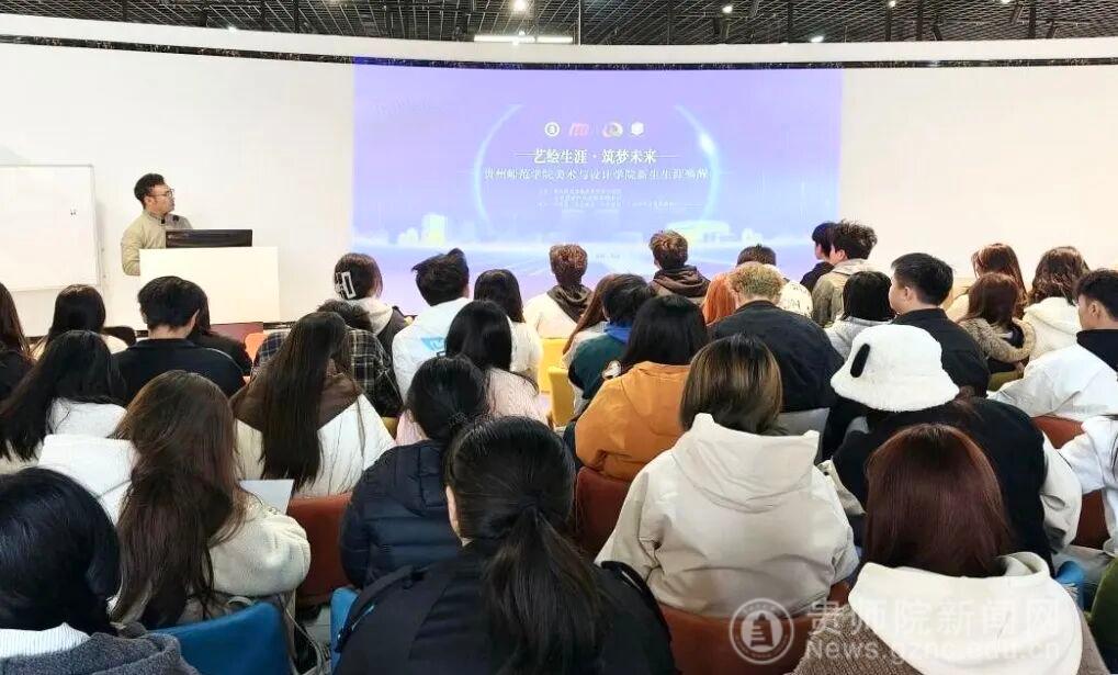 本网讯 为助力新生明确生涯方向、提升专业认知与规划意识,近日,贵州师范学院美术与设计学院在逸夫楼艺术实践工坊举办“艺绘生涯·筑梦未来”生涯规划系列讲座。活动由学院党委副书记邱琴、辅导员陈代威先后主持,特邀乌当区家庭教育指导中心副主任申立强担任全系列主讲,面向2025级公共艺术、数字媒体艺术、美术学专业全体新生。
