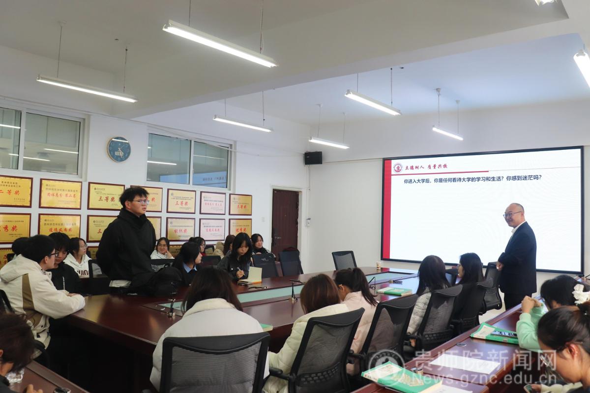 本网讯 为助力学生明晰职业发展方向,汲取从教经验,11月13日,生物科学学院特邀贵州省望谟民族中学杨超老师,于宁静楼611开展《从“迷茫”到“清晰”——分享个人的从教经历》主题学术讲座。本次讲座由学院副院长孟泽彬主持,24应生一班学生到场聆听。