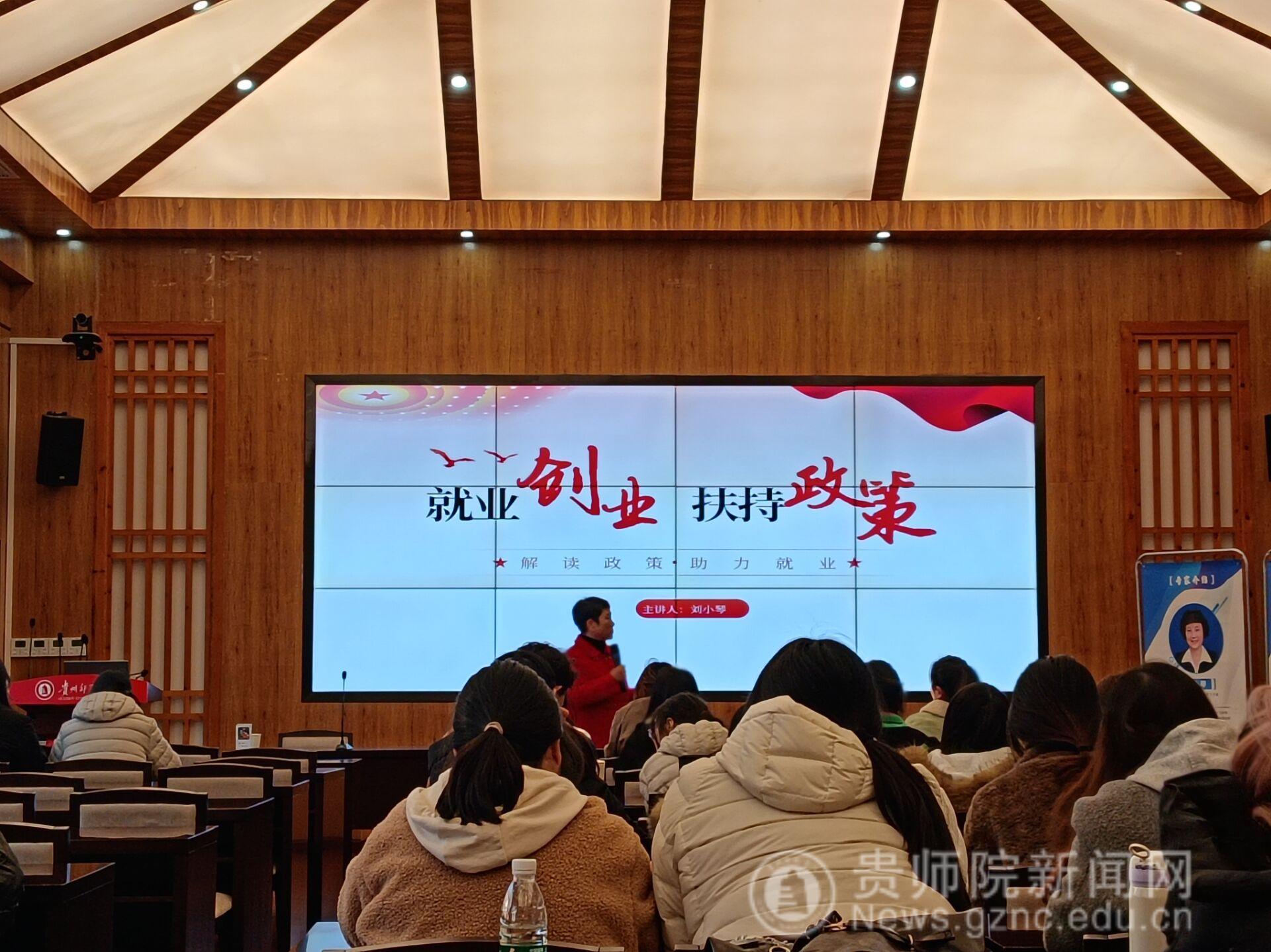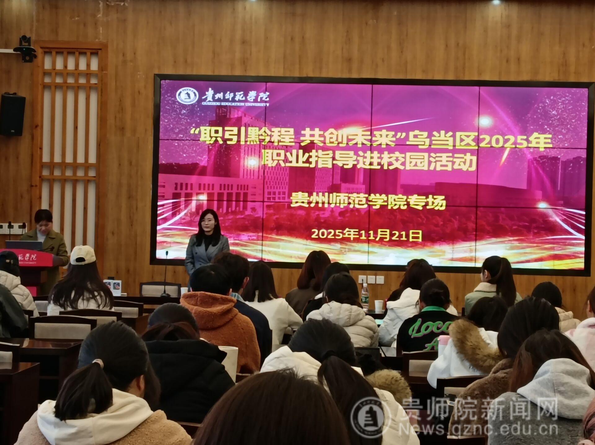 为帮助学生明晰就业形势、掌握求职技能、规划职业方向,2025年11月21日下午由乌当区人力资源和社会保障局与贵州师范学院教育科学学院联合策划的“职引黔程·共创未来”职业指导系列讲座,在学校印山书院顺利开展。活动特邀贵州省省级劳务品牌专家、省级创业指导专家刘小琴,企业管理咨询专家、资深人才测评官蒲天竹担任主讲,教育科学学院党委副书记傅小芳、辅导员李琴及22级应用心理学班、艺术教育专业120余名学生共同参加本次活动。