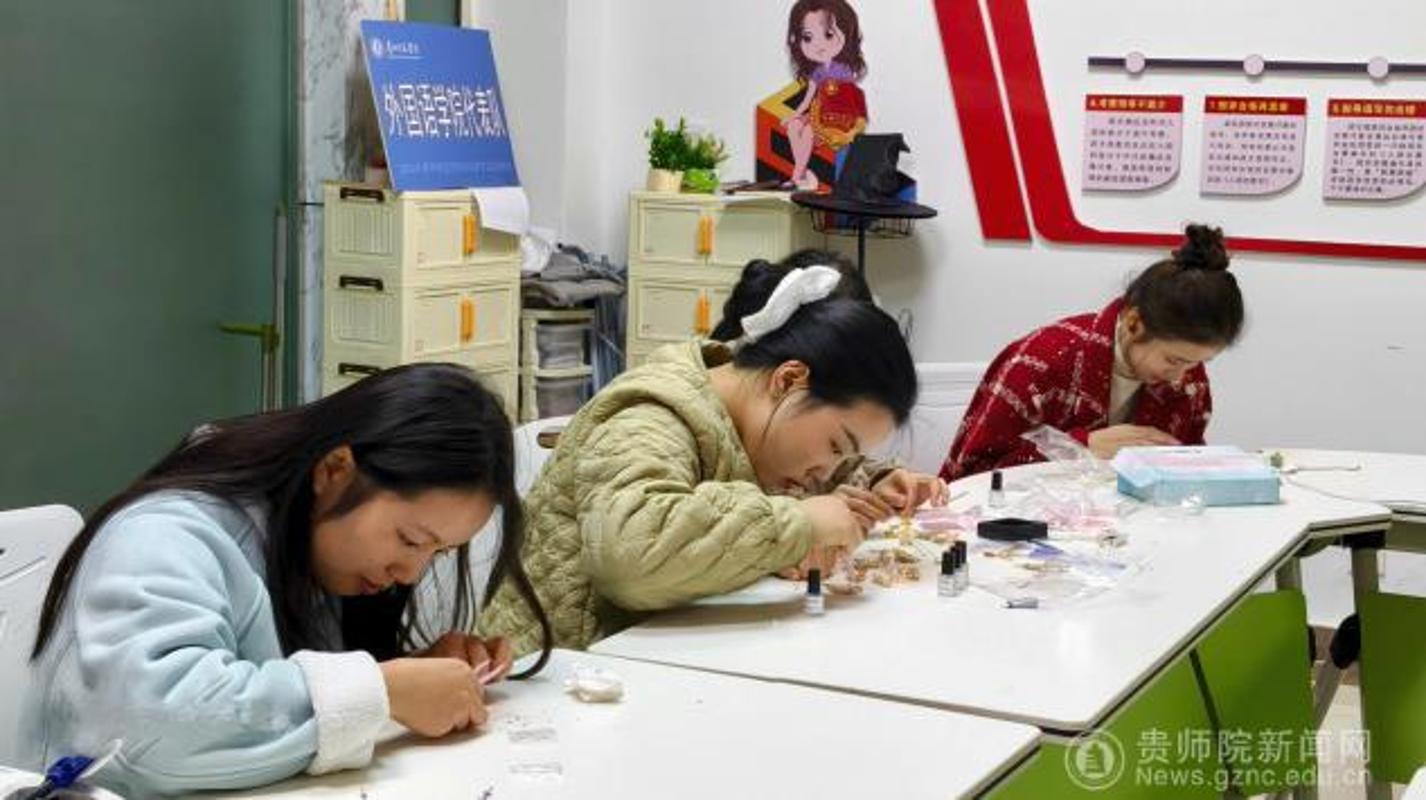 本网讯 为落实学校第二届“一站式”学生社区文化节“文化浸润·自信笃行”素养提升活动的有关要求,涵养学生文化自信,推动中华优秀传统文化与时代精神深度融合,积极发挥学院心理辅导站育人协同作用。12月8日,外国语学院“指尖凝雅韵,疗愈心之境”非遗手工活动在小言之家举办,23、24级心理委员沉浸式体验螺钿技艺,收获文化熏陶与心灵疗愈的双重成长。