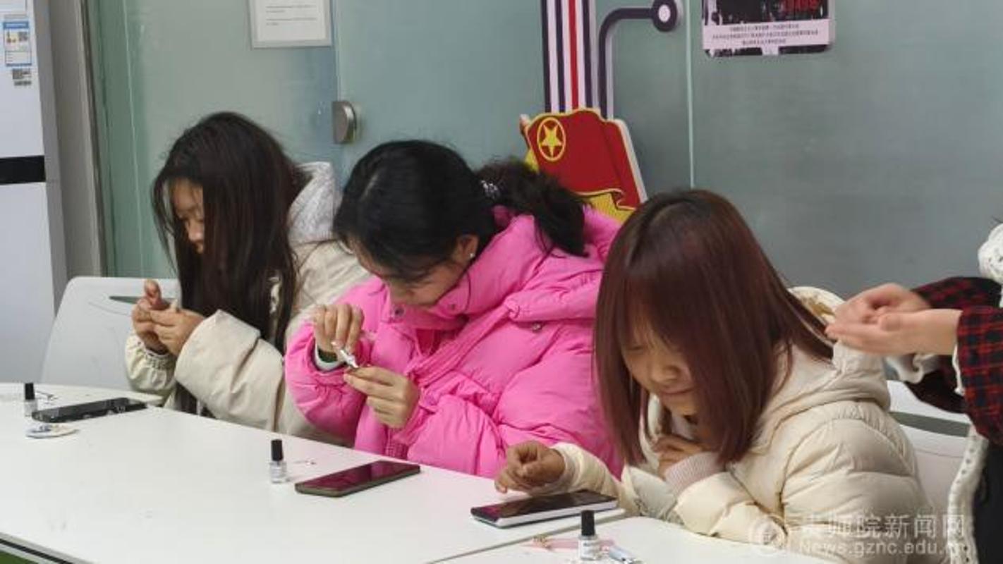 学院心理辅导站牵头策划此次活动,创新“传统文化+ 心理疗愈”模式,结合心理委员岗位需求筛选螺钿项目。活动现场,主持人解读技艺文化内涵,通过技巧点拨与鼓励引导,让非遗创作成为心理疏导的生动实践。