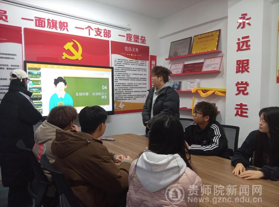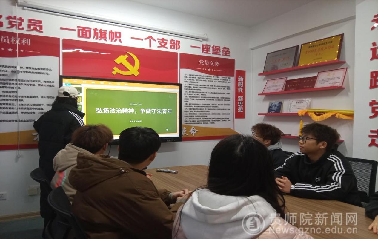 本网讯 12月4日是我国第十二个国家宪法日。为进一步增强我院学生的法治观念,提升学生知法、守法意识,营造平安和谐的校园氛围,音乐舞蹈学院学生事务办公室于12月16日在党员活动室成功举办“弘扬法治精神,争做守法青年”专题学习会。