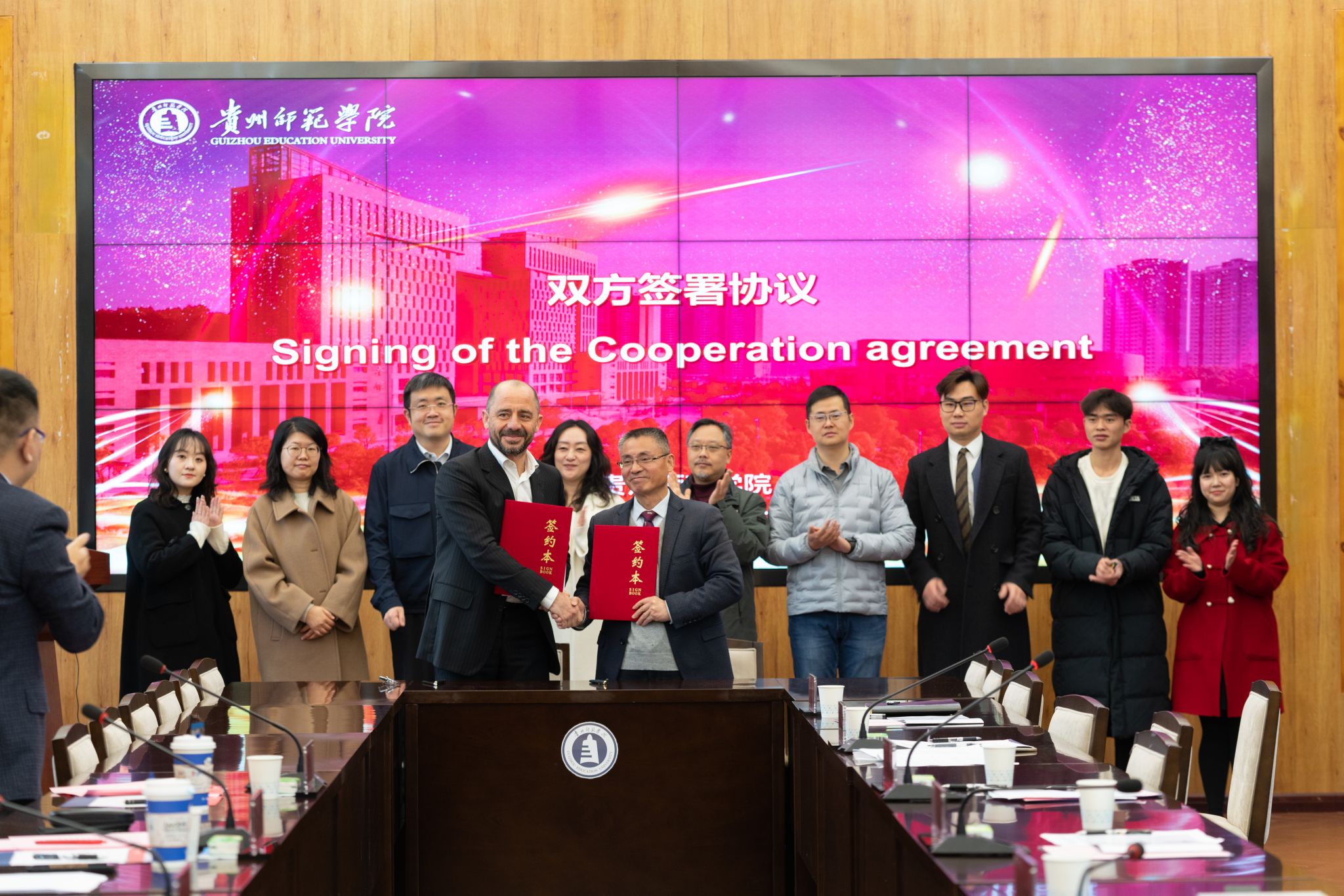 本网讯 2026年3月9日,贵州师范学院与意大利万神殿设计与科技学院在印山书院一楼山水讲堂举行中外合作办学签约仪式。仪式由贵州师范学院对外交流与合作处处长...