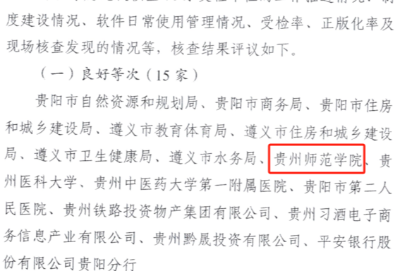 本网讯 近日,贵州省推进使用正版软件工作联席会议办公室通报了2025年全省软件正版化核查情况。在此次覆盖全省70家单位的专项核查中,我校软件正版化工作获评...